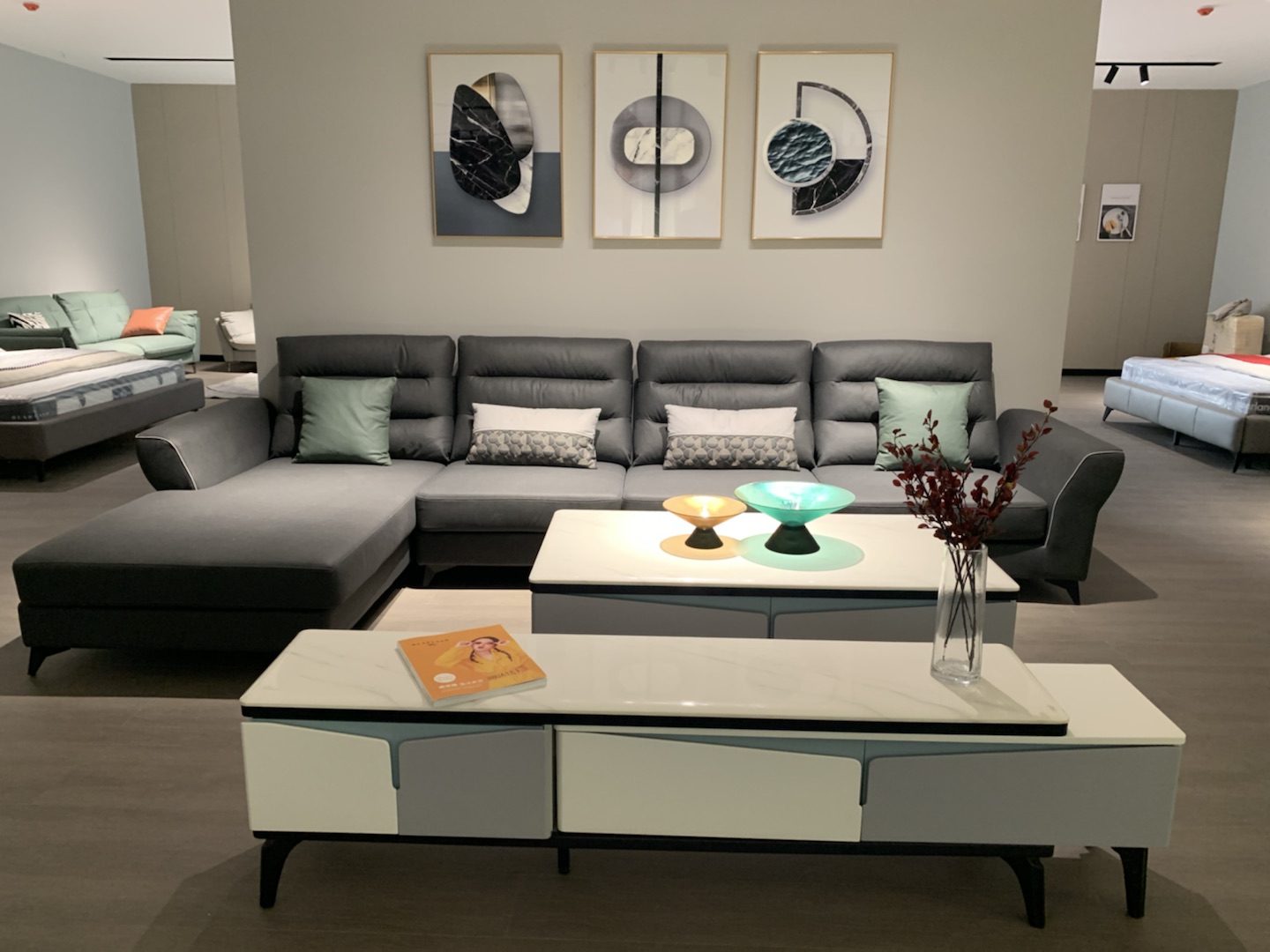 湘潭易俗河店也是今年蝶依斕“開一店得三店”大家居模式第一批擁躉,店內(nèi)以休閑沙發(fā)、功能沙發(fā)、軟床、床墊為產(chǎn)品陳列主線,另外用一面墻開設(shè)“斕奢生活”窗簾輕店,搭配客餐廳配套、家居小件,精致到每一處的配飾搭配,1:1還原居住空間,以場(chǎng)景化演繹家居各種風(fēng)格典范。魔法整家沙發(fā)、寢具、窗簾等運(yùn)用色彩+潮流設(shè)計(jì)的組合,以品質(zhì)家居和軟裝配套打通與消費(fèi)者溝通渠道,增加品牌與新生代用戶之間的粘性。