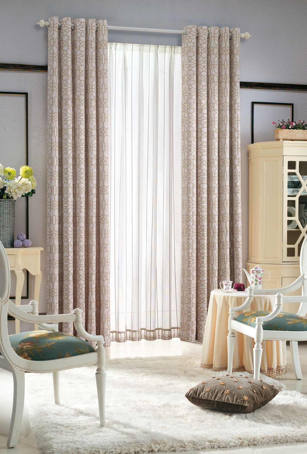 在選擇窗簾的花色圖案時(shí),要與居室相協(xié)調(diào),并根據(jù)所在地區(qū)的環(huán)境和季節(jié)而權(quán)衡確定。夏季宜選用冷色調(diào)的織物,冬季宜選用暖色調(diào)的織物,春秋兩季則應(yīng)選擇中性色調(diào)的織物為主。從居室整體協(xié)調(diào)角度上說,應(yīng)考慮與墻體、家具、地板等的色澤是否協(xié)調(diào)。假如家具是深色調(diào)的,就應(yīng)選用較為淺色的窗簾,以免過深的顏色使人產(chǎn)生壓抑感。 此外,不同質(zhì)地的窗簾布料會(huì)產(chǎn)生不同的裝飾效果。在選擇窗簾的質(zhì)地時(shí),首先應(yīng)考慮房間的功能。浴室、廚房就要選擇實(shí)用性較強(qiáng)、易洗滌的布料,風(fēng)格力求簡(jiǎn)單流暢;客廳、餐廳可以充分保證不受外界光線及噪聲的影響,宜選厚度較強(qiáng)的面料;書房窗簾應(yīng)選透光性好、明亮的布料,色彩淡雅,有助于放松身心和思考,融入流行時(shí)尚元素,合理布藝搭配為家居增色。布藝窗簾是家居裝修中必不可少的部分,它集功能性與裝飾性于一體,合適的搭配可以讓家居增色不少。