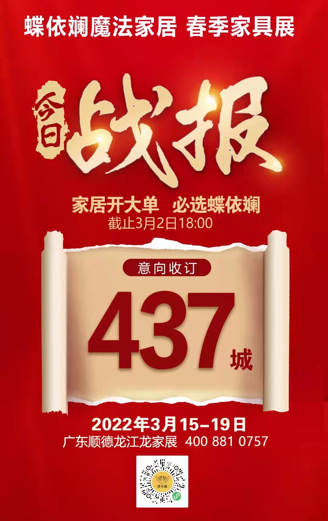 作為已有28年歷史的家居品牌,2021年是蝶依斕戰(zhàn)果豐碩的一年,湖南窗簾智慧工廠建成投產(chǎn),“開一店得三店”、“斕奢輕店”、“網(wǎng)紅柜”等創(chuàng)新新模式在全國遍地開花,在全國300多家專賣店、1000多家經(jīng)銷商的市場(chǎng)版圖上又添濃墨重彩的一筆。2022年首戰(zhàn)沖鋒的號(hào)角已吹響,各精英們將以飽滿的激情,昂揚(yáng)的斗志、勝算在握的信心,迎戰(zhàn)春展,創(chuàng)造新輝煌。