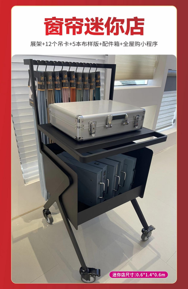 窗簾迷你店(展架0.6*0.6*1.4+12個(gè)吊卡+5本布樣版+配件箱+全屋購(gòu)小程序)