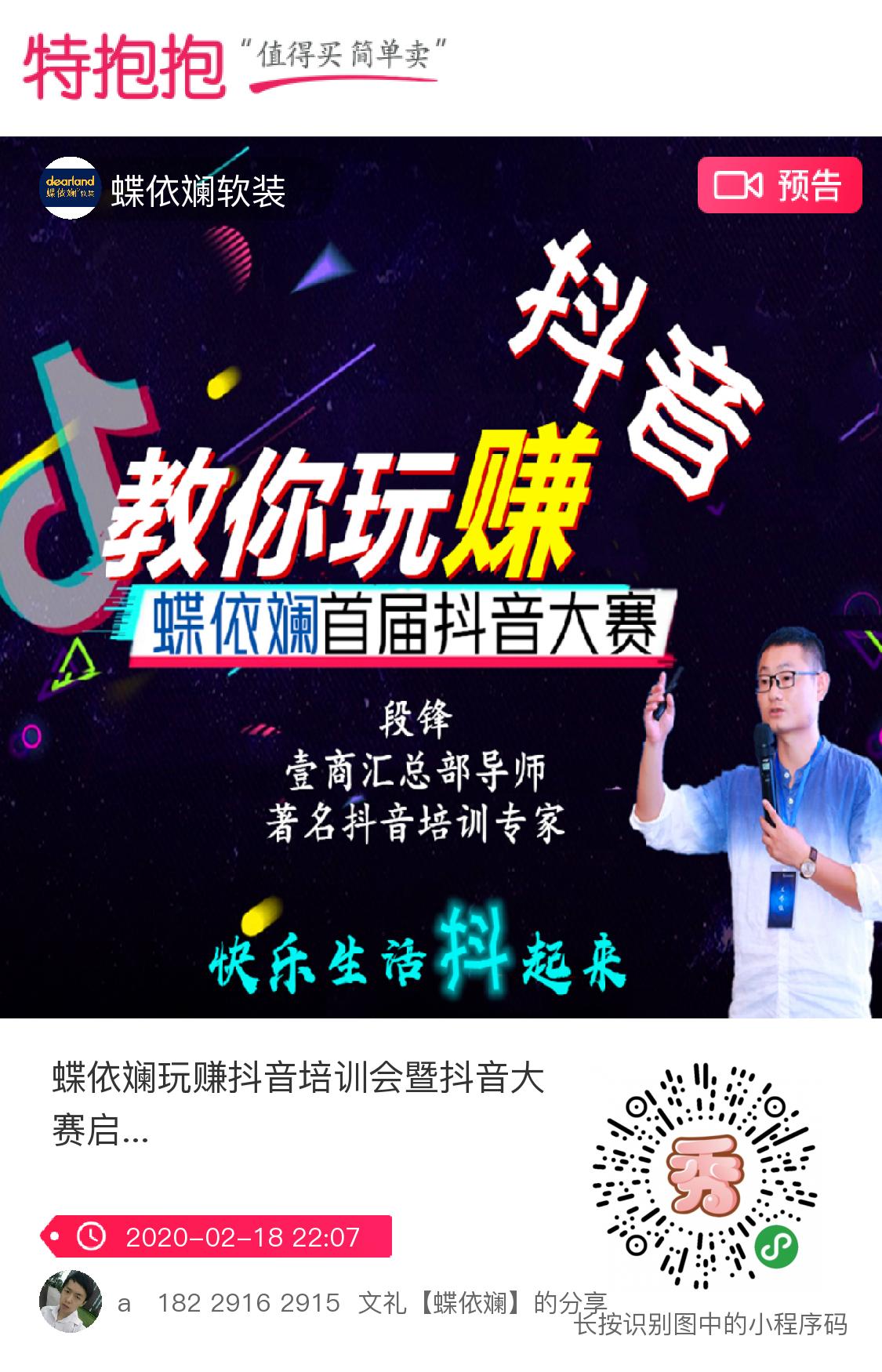 蝶依斕總部特邀抖音培訓專家、壹商匯總部導師段公子直播教你如何玩賺抖音(開號、吸粉、拍攝、剪輯、種草、帶貨)