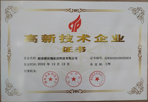2022年,蝶依斕(湖南)公司通過(guò)“高新技術(shù)企業(yè)”認(rèn)定