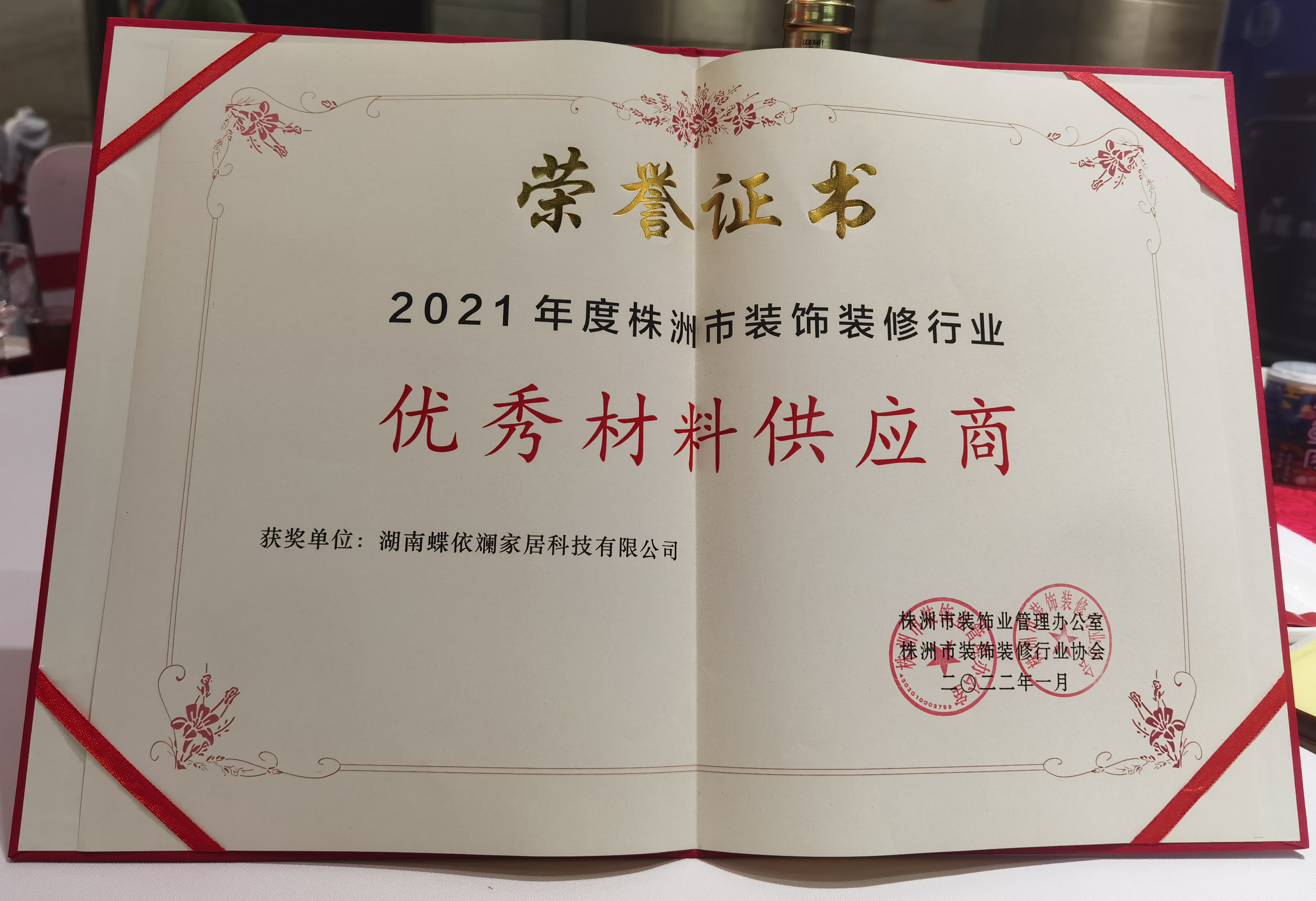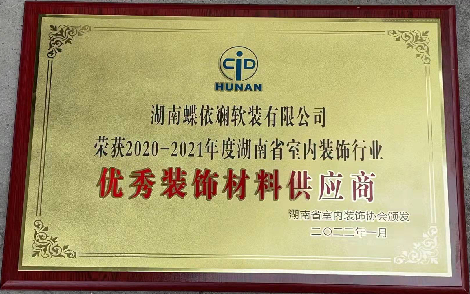 蝶依斕湖南公司榮膺市裝飾裝修行業(yè)“優(yōu)秀材料供應(yīng)商”稱號(hào)