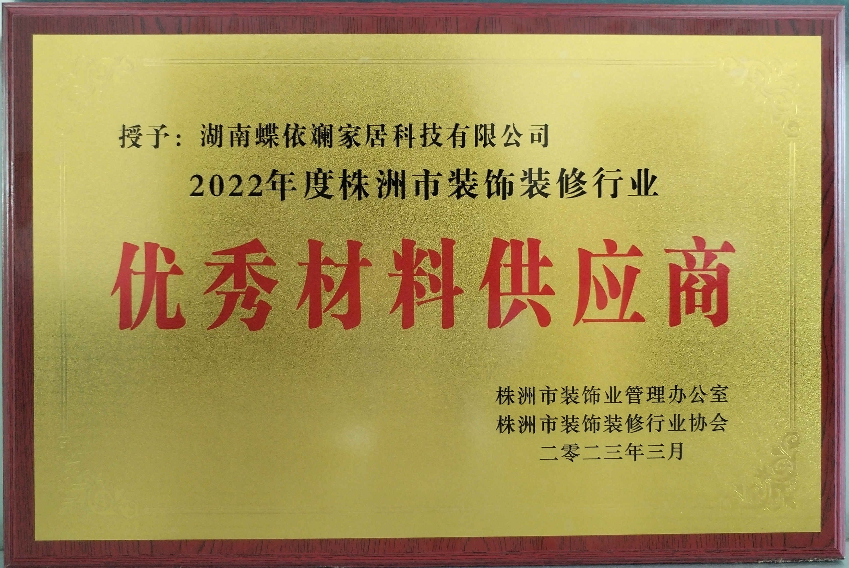 蝶依斕(湖南)連續(xù)三年蟬聯(lián)“優(yōu)秀材料供應商”稱號