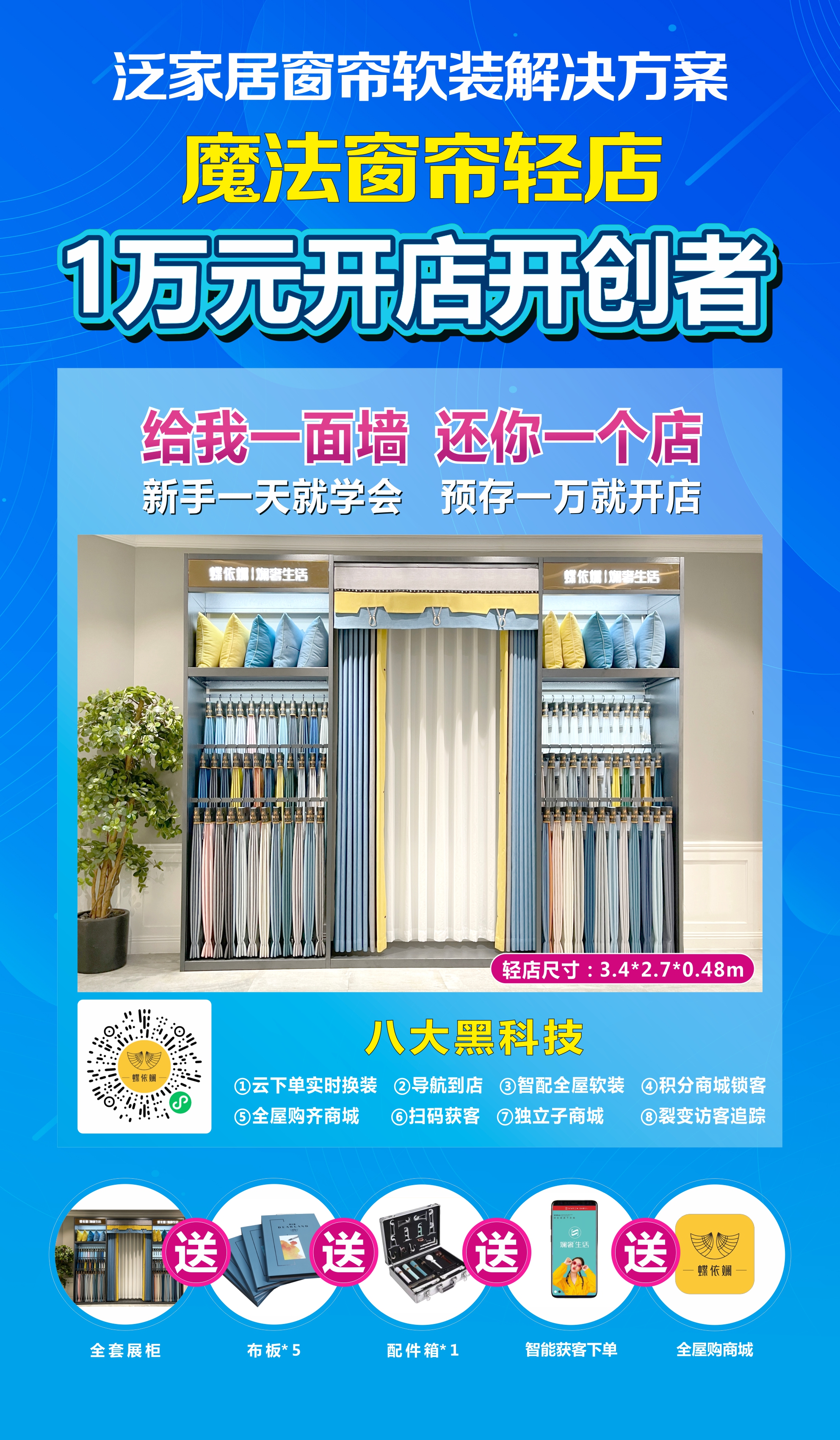 作為百度打造的一站式招商加盟項(xiàng)目服務(wù)平臺(tái),此次簽約合作的“魔法窗簾輕店”新模式,以“一面墻,一個(gè)展柜,投入一萬(wàn)元”,直接進(jìn)駐家具、建材等泛家居門(mén)店內(nèi),成為“店中輕店”,為家具、建材等門(mén)店提供窗簾軟裝解決方案,實(shí)現(xiàn)全屋家具、軟裝配套銷售。作為與湖南工業(yè)大學(xué)“產(chǎn)學(xué)研”合作共建項(xiàng)目,“魔法窗簾輕店”發(fā)布以來(lái),年開(kāi)店突破400多家,并已申請(qǐng)多項(xiàng)國(guó)家發(fā)明專利、新型實(shí)用專利、外觀設(shè)計(jì)專利。