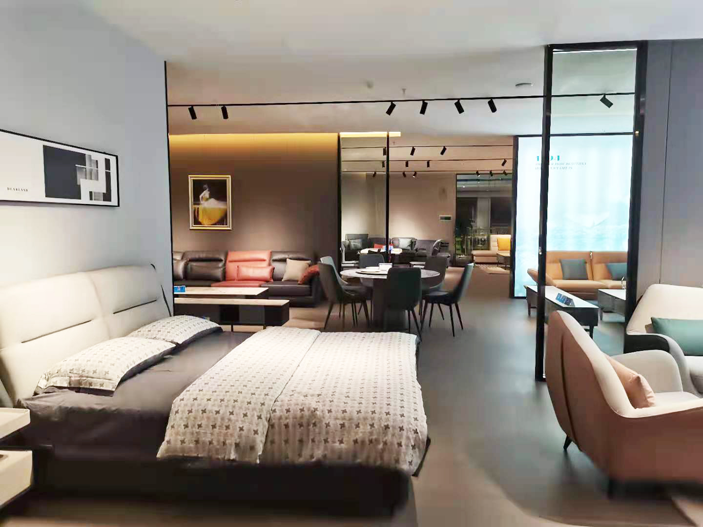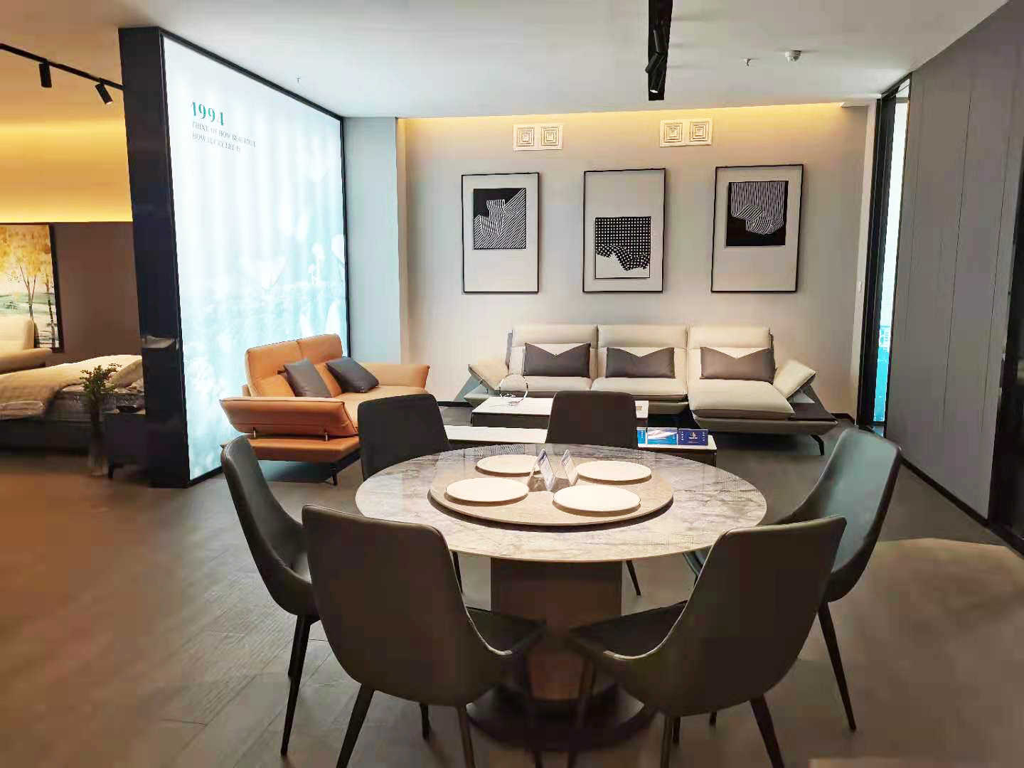 玉溪專賣店位于紅塔區(qū)得勝家居廣場。為了在有限的店面空間內(nèi),創(chuàng)造更好的購物體驗,軟裝設(shè)計師在保持品牌調(diào)性的同時,以沙發(fā)、寢具產(chǎn)品為主體,整體搭配茶幾、電視柜和餐桌椅等配套產(chǎn)品, 帶來豐富而品類齊全的購物體驗,讓客戶感受提升幸福感的家居產(chǎn)品,體驗一店購齊家居帶來的服務(wù)與便利。