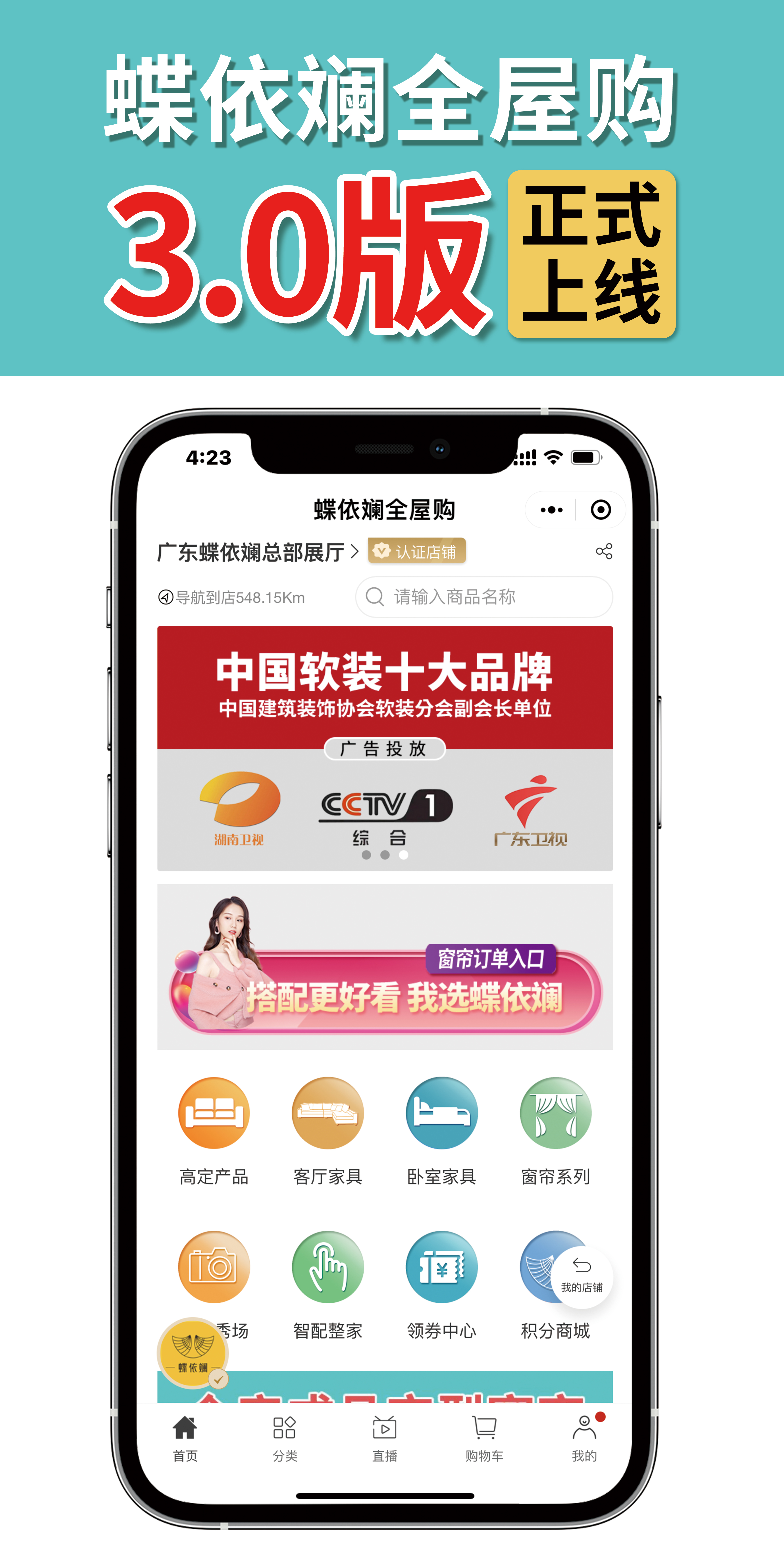 蝶依斕全屋購3.0版正式上線啦!新上線的3.0版囊括全屋家居產(chǎn)品、窗簾訂單小程序、智配整家、全國專賣店地圖、商學(xué)院、積分商城等多個(gè)版塊,將實(shí)現(xiàn)獲客、分享、自助搭配設(shè)計(jì)、一站式購齊全屋家居等多個(gè)功能。