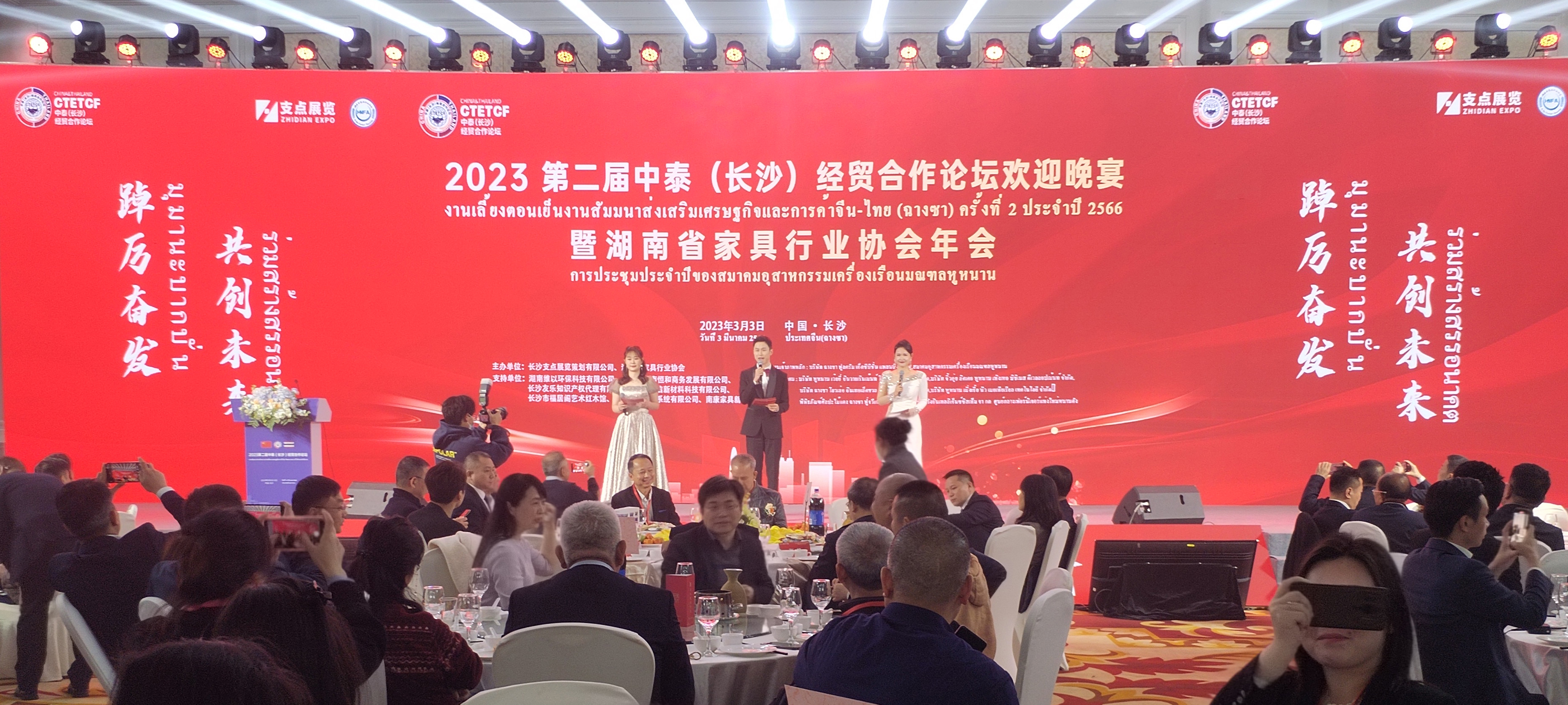 3月4日,2023年第二屆中泰(長(zhǎng)沙)經(jīng)貿(mào)合作論壇歡迎晚宴暨湖南省家具行業(yè)協(xié)會(huì)年會(huì)在長(zhǎng)沙舉行。政府領(lǐng)導(dǎo)、各商協(xié)會(huì)負(fù)責(zé)人、湖南家協(xié)會(huì)員和家具行業(yè)精英以及來自泰國(guó)的友人共襄盛舉。