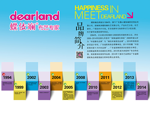 蝶依斕品牌創(chuàng)立于1994年,20多年來致力于家居布藝,旗下?lián)碛泻现曛?a href="/index.aspx" class='con_kwd'>蝶依斕布藝有限公司、廣東佛山蝶依斕家居用品有限公司。其產(chǎn)品布藝沙發(fā),布藝窗簾廣銷國內(nèi)外市場。在全國擁有120多家布藝沙發(fā)加盟、布藝窗簾加盟連鎖專賣店。