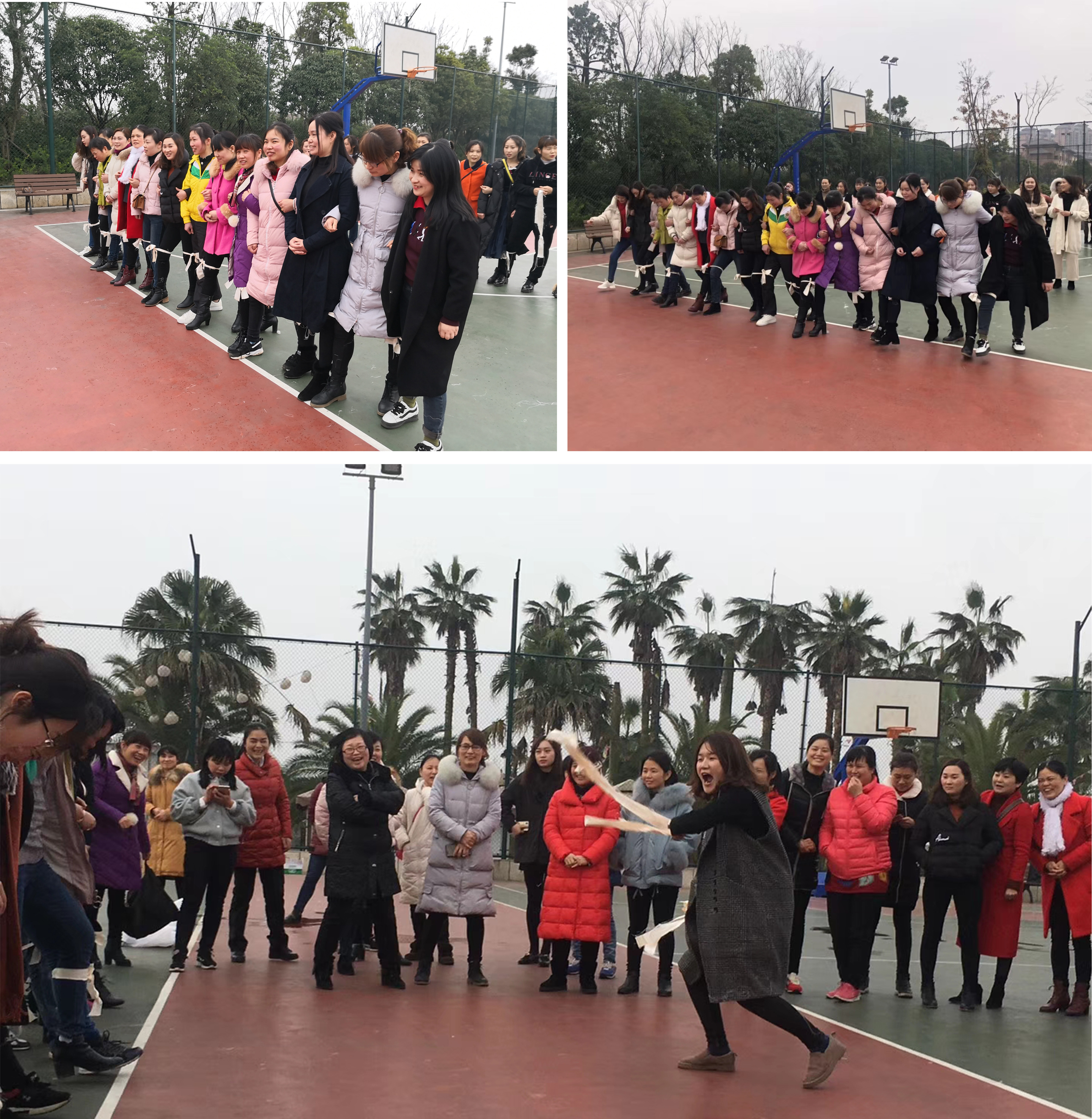 最先開始的游戲是“兩人三足”比賽,蝶依斕的女將們硬是將“飛毛腿”神功發(fā)揮到了極致,雖然大家的腿綁在一起的,但從起點(diǎn)到終點(diǎn),齊心協(xié)力,一路飛奔,喊著響亮的口號(hào),“這就是我們年輕的戰(zhàn)場(chǎng)”。